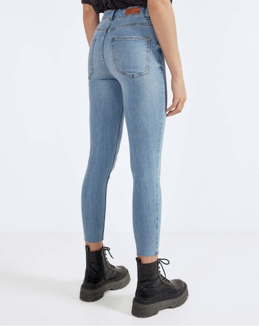 The insulated jacket is made of leather. A light layer of insulation. Details: stand-up collar, zipper, two pockets on the sides.